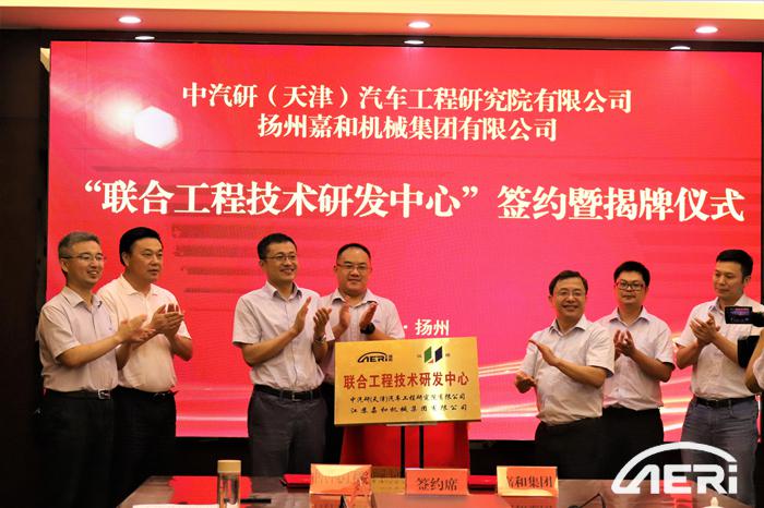2020年7月16日,中汽研(天津)汽車工程研究院有限公司(以下簡稱“工程院”)黨委書記、院長高繼東、院長助理田涌君、第七開發(fā)部主任朱仲文一行赴揚(yáng)州高郵市汽車科創(chuàng)園調(diào)研交流,并分別與江蘇嘉和機(jī)械集團(tuán)、揚(yáng)州龍盛凱馳汽車有限公司兩家園區(qū)內(nèi)的企業(yè)簽署戰(zhàn)略合作協(xié)議,成立“聯(lián)合工程技術(shù)研發(fā)中心”。