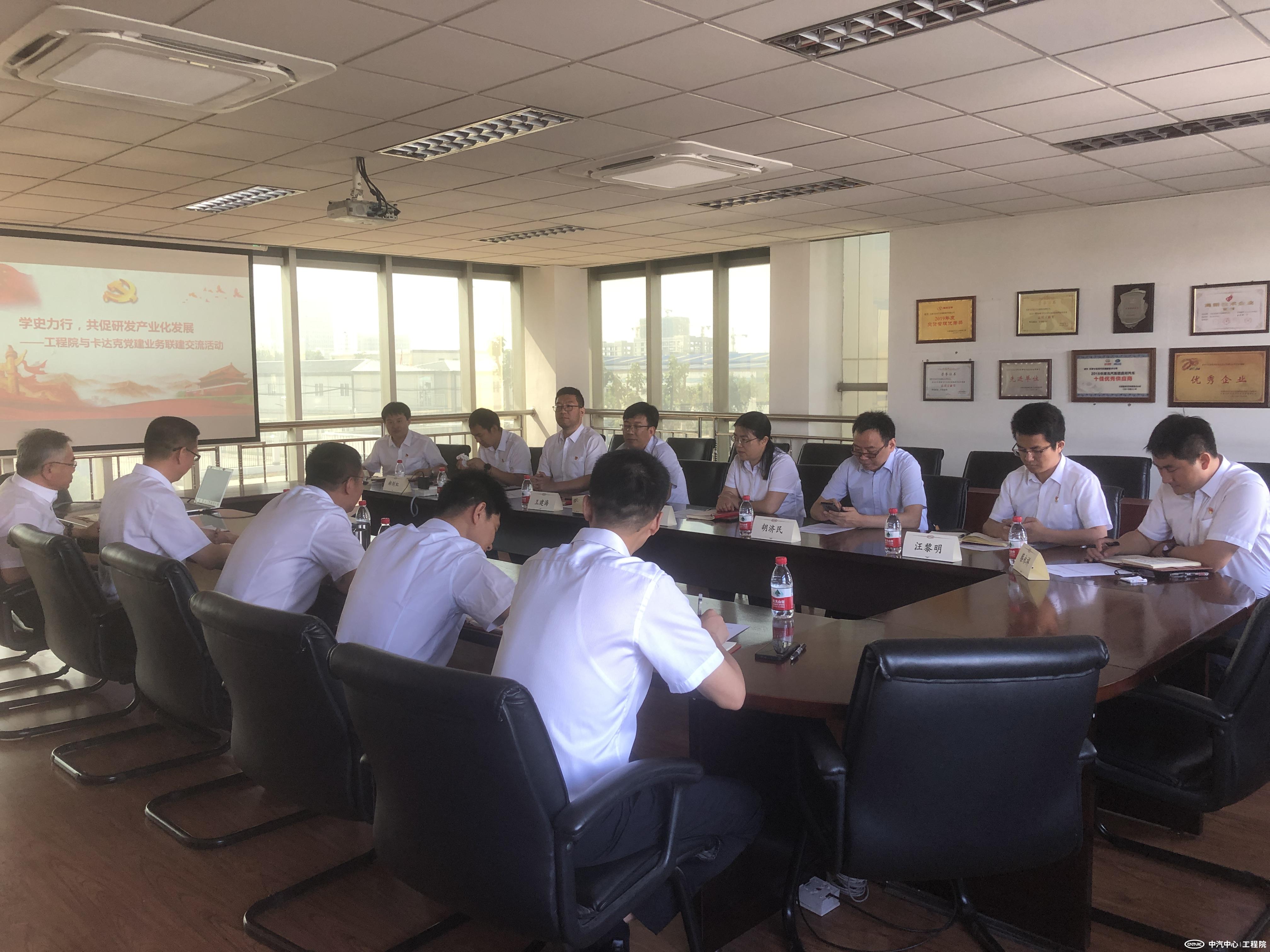 為加強(qiáng)中心內(nèi)部院所間黨建與業(yè)務(wù)聯(lián)建交流,打通業(yè)務(wù)壁壘,搭建合作橋梁,切實(shí)做到以高質(zhì)量黨建引領(lǐng)高質(zhì)量發(fā)展,6月11日,中汽研(天津)汽車工程研究院有限公司(簡(jiǎn)稱“工程院”)與天津卡達(dá)克汽車高新技術(shù)有限公司(簡(jiǎn)稱“卡達(dá)克”)組織開展黨建與業(yè)務(wù)聯(lián)建交流活動(dòng)。工程院黨委書記、總經(jīng)理王建海,卡達(dá)克黨支部書記、總經(jīng)理李陸山,及雙方黨組織班子成員、相關(guān)部門人員參加活動(dòng)。