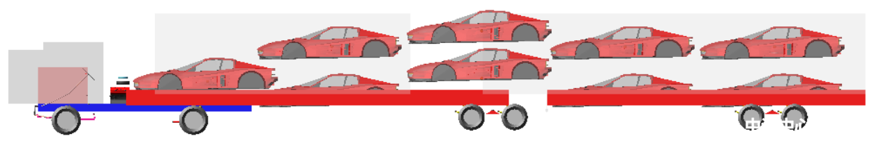 針對(duì)上述情況,此項(xiàng)技術(shù)可以通過(guò)優(yōu)化底盤結(jié)構(gòu)、零部件參數(shù)提高汽車列車行駛穩(wěn)定性,降低最小轉(zhuǎn)彎半徑提高低速靈活性。本技術(shù)采用多體動(dòng)力學(xué)分析優(yōu)化,可以大大提高汽車列車底盤性能,縮短開發(fā)周期。