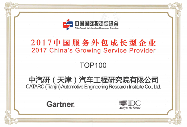 日前,中國(guó)國(guó)際投資促進(jìn)會(huì)公布了2017年中國(guó)服務(wù)外包百?gòu)?qiáng)成長(zhǎng)型企業(yè)名單,中汽研(天津)汽車工程研究院有限公司(以下簡(jiǎn)稱“中汽研公司”)榮膺在列,獲得“2017中國(guó)服務(wù)外包百?gòu)?qiáng)成長(zhǎng)型企業(yè)”稱號(hào)。