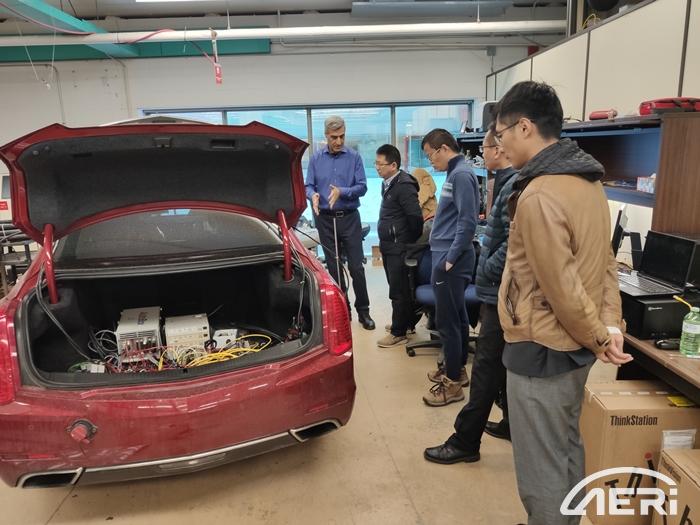 交流訪問中,王新宇介紹了第三開發(fā)本部底盤方向業(yè)務(wù)的轉(zhuǎn)型需求,并與Amir院士團(tuán)隊進(jìn)行了討論,探討潛在的合作機會,并邀請我方代表參觀車輛機電系統(tǒng)實驗室產(chǎn)學(xué)研融合成果。目前滑鐵盧方面在車輛動力學(xué)這一領(lǐng)域主要的研究方向有:車輛底盤系統(tǒng)主動控制與狀態(tài)估計、發(fā)動機可變氣門正時系統(tǒng)、主動懸架、智能輪胎、域控制器、有限場景自動駕駛汽車等。